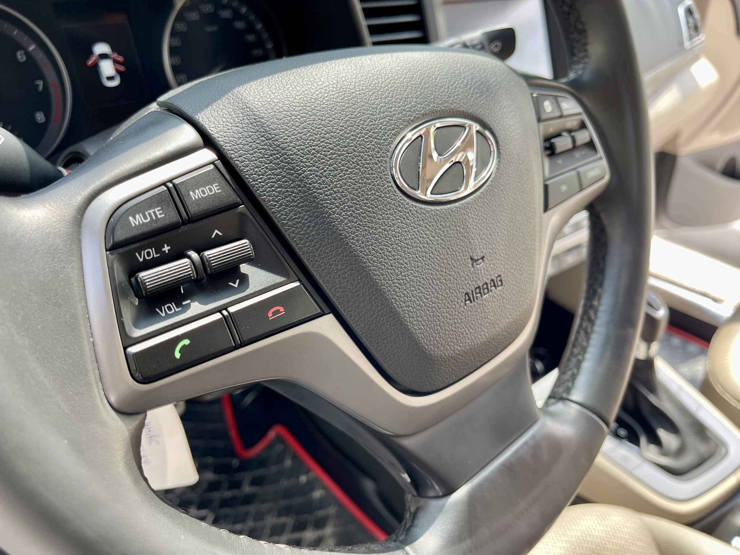 Elantra 2019 trang bị vô-lăng bọc da ba chấu có tích hợp các nút bấm của hệ thống điều khiển hành trình Cruise Control (bản 2.0 AT) cũng như hệ thống thông tin liên lạc với chức năng kết nối đàm thoại rảnh tay. Cảm giác cầm nắm là dễ chịu và chắc chắn, các phím bấm đặt ở vị trí hợp lý để người lái dễ dàng làm quen sử dụng.